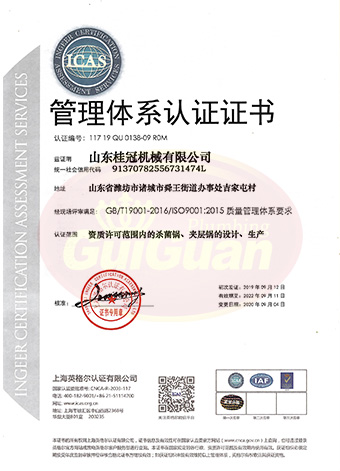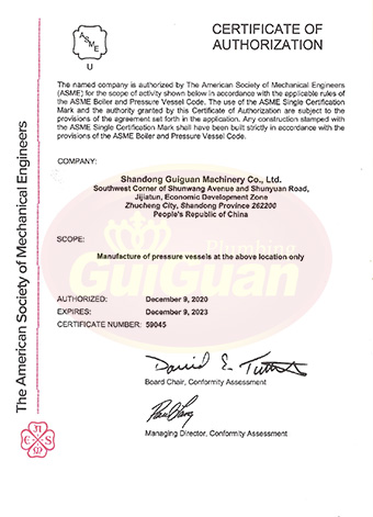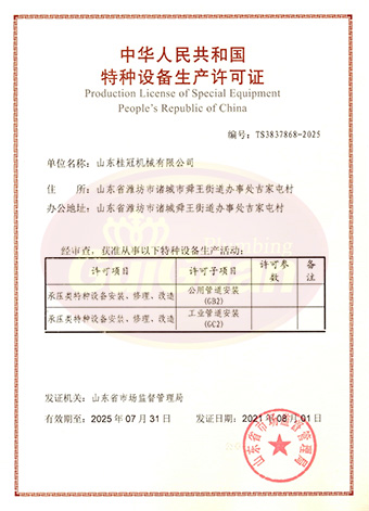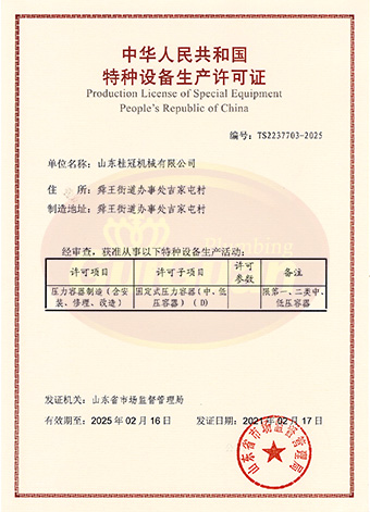 山東桂冠機械有限公司成立于2008年,注冊資金1600萬元,現(xiàn)有員工200多人,中高級技術管理人員45人,占地面積27000多平方米,生產(chǎn)車間面積12000多平方米。公司具備壓力容器產(chǎn)品的設計、制造(證書編號為:TS2237703-2025)、壓力管道安裝(證書編號為TS3837607-2025)全套壓力容器資質(zhì);通過國家ISO9001質(zhì)量管理體系認證、美國ASME認證、歐盟CE認證;擁有建筑安裝機電工程專業(yè)承包叁級資質(zhì)、建筑工程施工總承包叁級資質(zhì)及對外貿(mào)易經(jīng)營出口權(quán)…